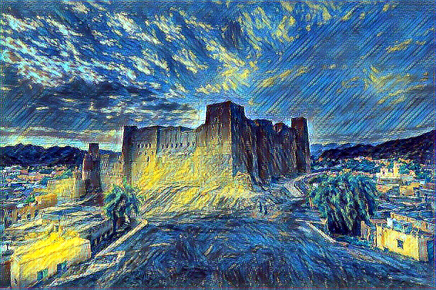 python stylize_image.py --image_path images/content_images/bahla-fort.jpg --pretrained_model starry_night